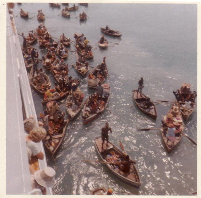Bartering for baskets, hats, mahogany etc at Haiti until our ship pulled out of the habour for Port Everglades