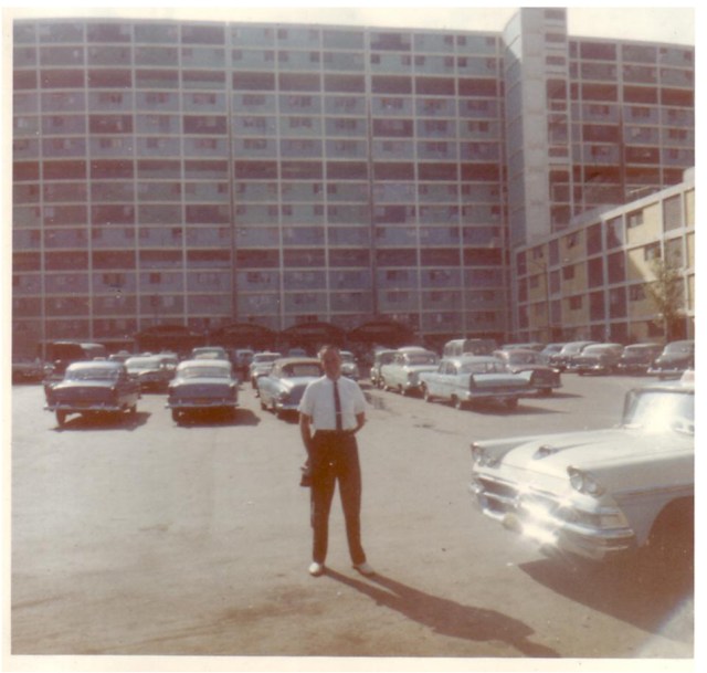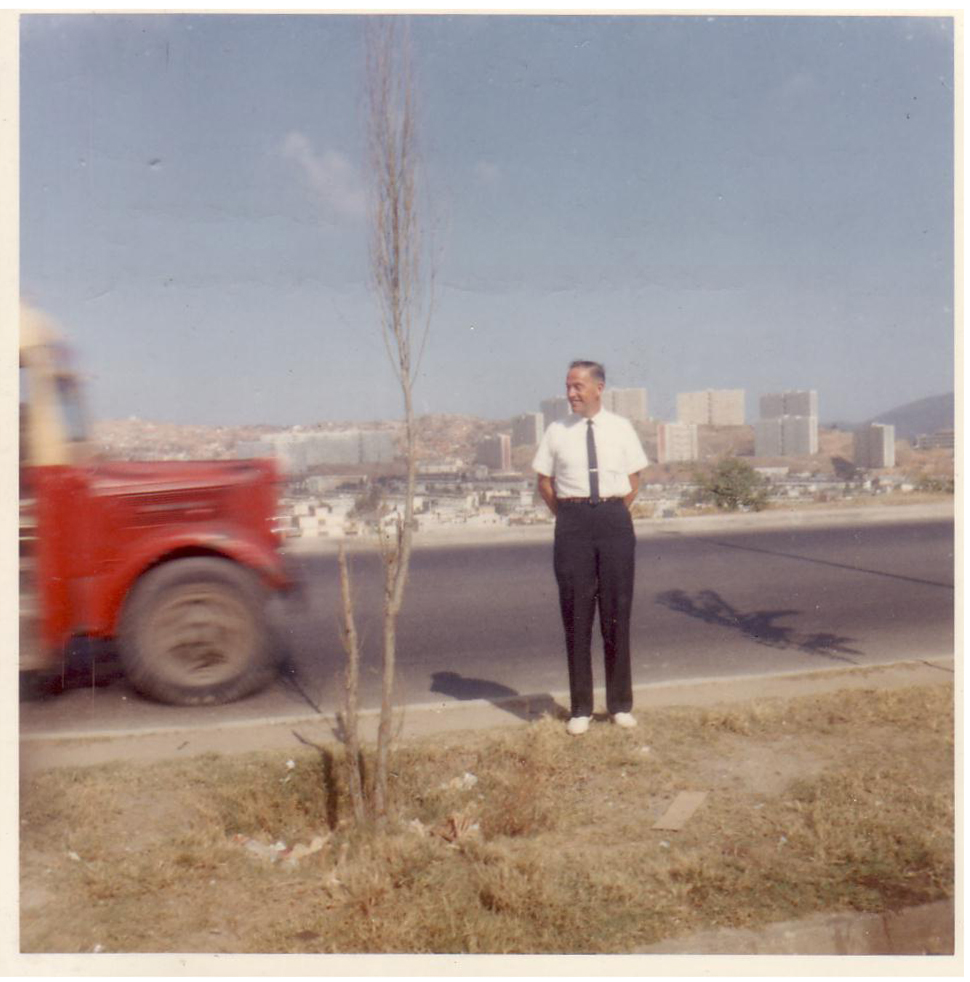 Scott forms the centre of the picture taken to show one of the many groups of 14 story huble housing in Caracas Venezuela