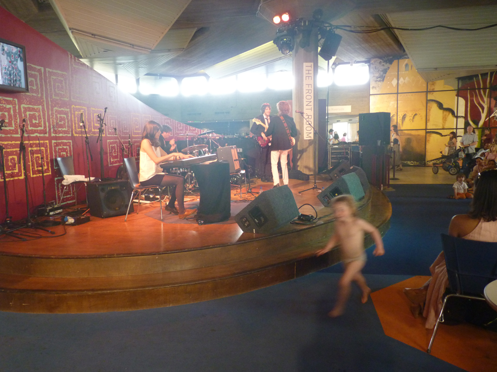 Tony Cannam Set and child running from fountain through audience at Queen Elizabeth Hall Front Room Vintage By Hemingway 31 July 2011