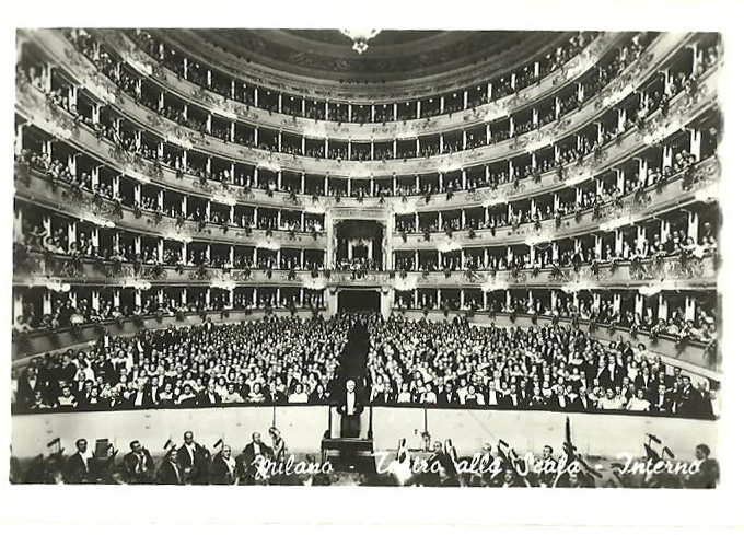 Milano Teatre to the Scala Interior Bromofoto Milano from Miniature set of postcards of Milan date unknown