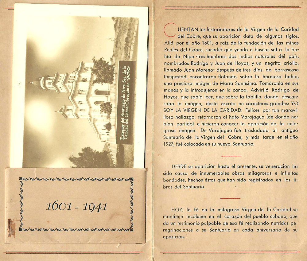 La Cia Ron Barcadi S.A promotional material for pilgrims to El Santuariro de la Virgen de la Caridad del Cobre, Patrona del Pueblo de Cuba offering them photographs