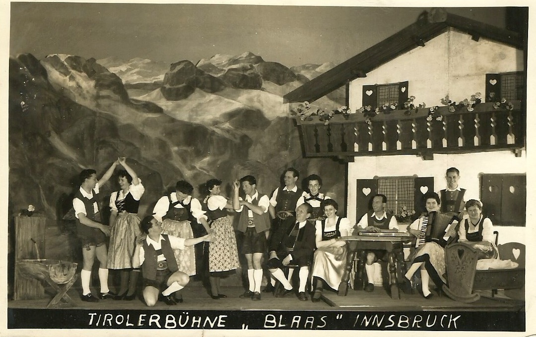 27.5.56 arrived today from Cortina D’Ampezza where the winter Olympic games were held ….On the back is a picture of a group who are giving a concert dancing and yodelling. I have bought their postcard here it is best love Dad