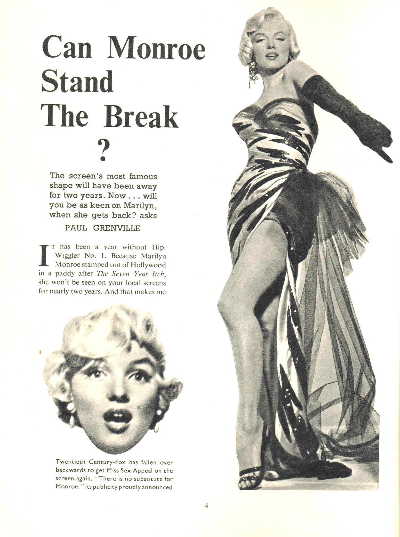 Can Monroe Stand The Break from Picturegoer Film Annual 1956-57 -She believes that she has registered hard enough to survive this yawning gap in her career.