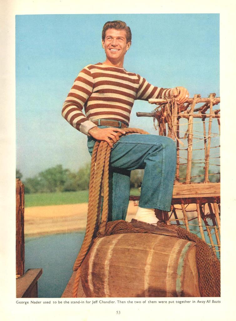 George Nader used to be the stand-in for Jeff Chandler. Then the two of them were put together in ‘Away All Boats’ from Picturegoer Film Annual 1956-57